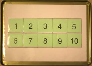 1. 利用Word在A4的紙上製作1~10的方格(4.95*4.95cm)並列印、護貝。這就是底紙的部分。
